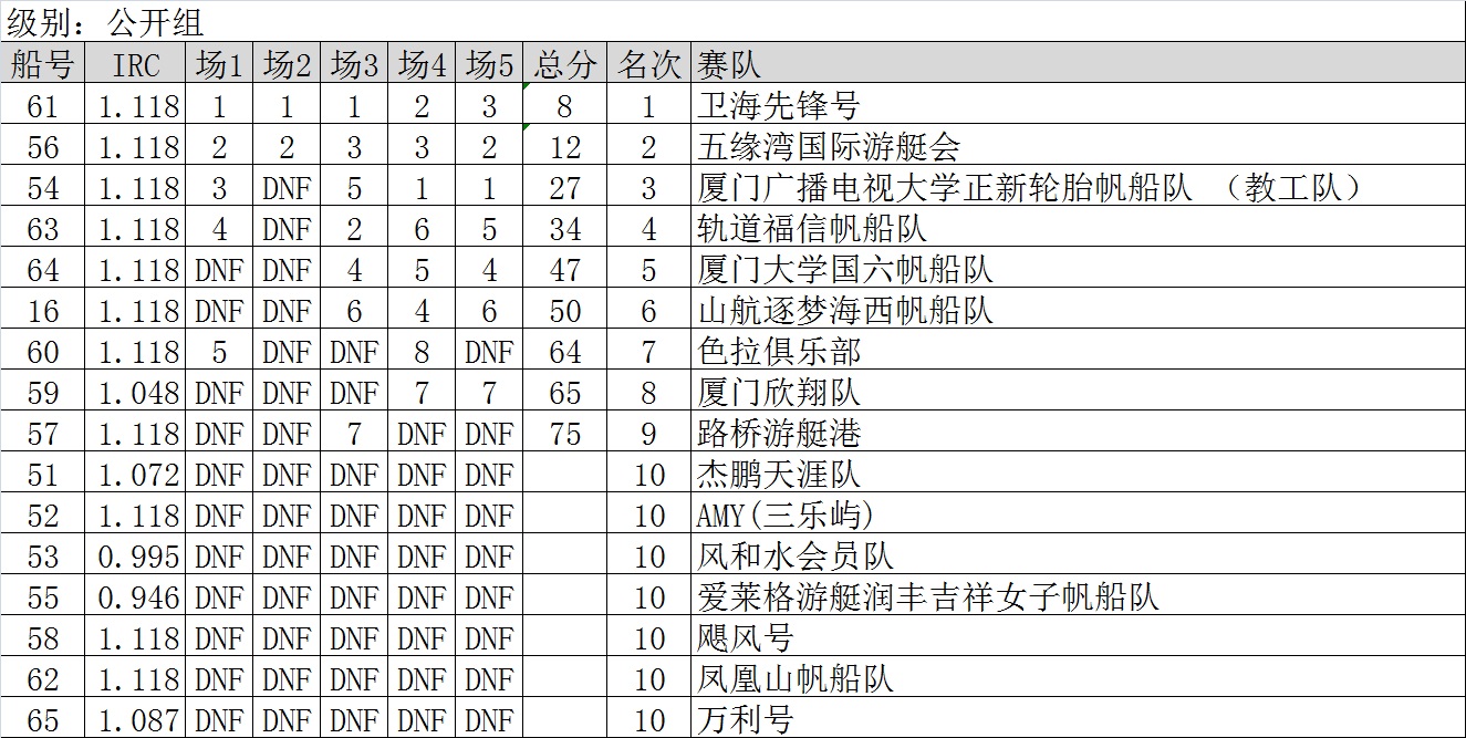 2015厦门新年帆船赛成绩表