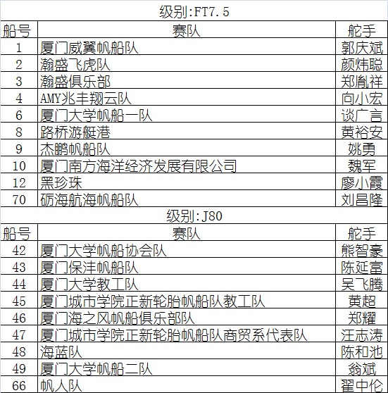 2015厦门市帆船游艇运动协会联赛参赛选手名单公示