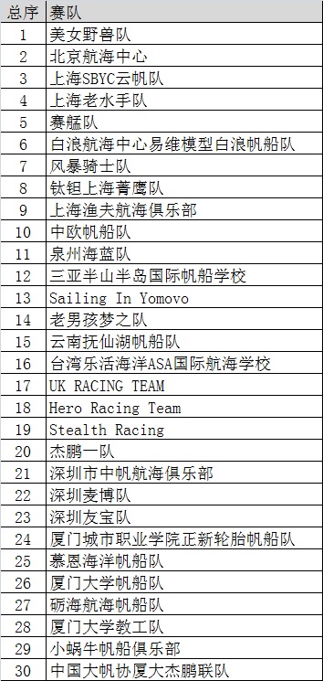 第11届中国“俱乐部杯”帆船挑战赛赛队及选手公示