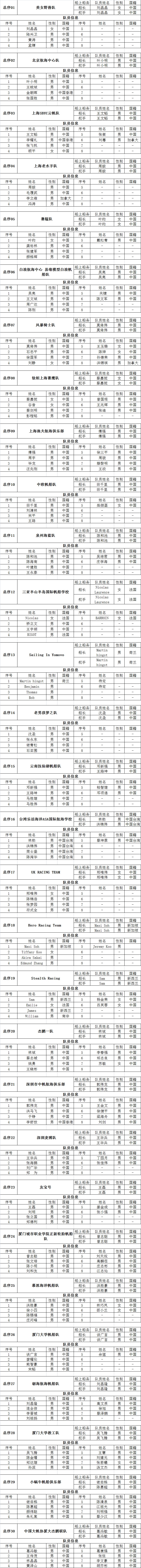>第11届中国“俱乐部杯”帆船挑战赛赛队及选手公示