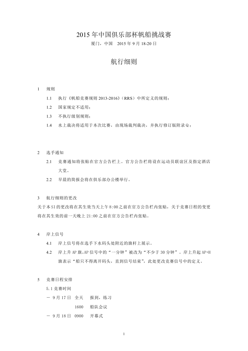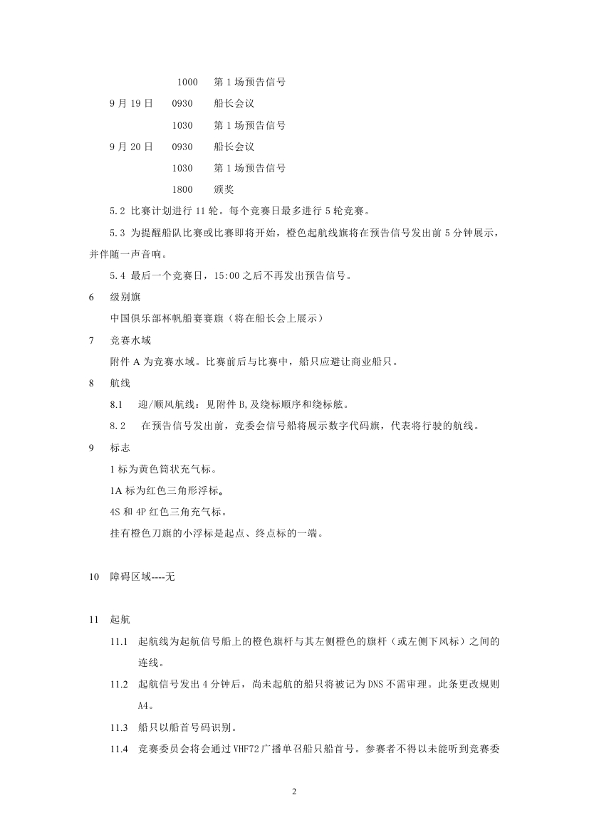 >第11届中国“俱乐部杯”帆船挑战赛航行细则