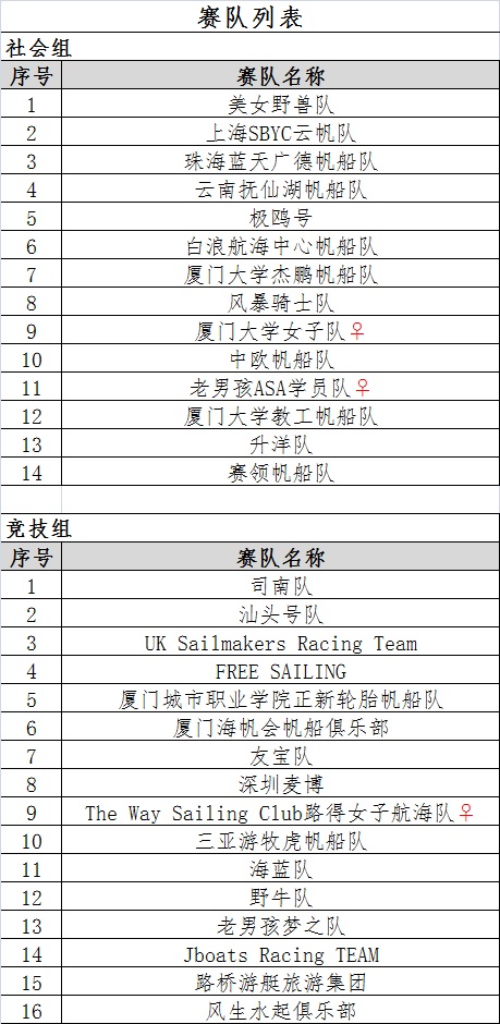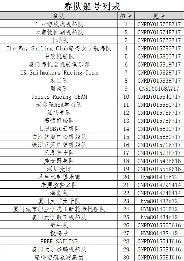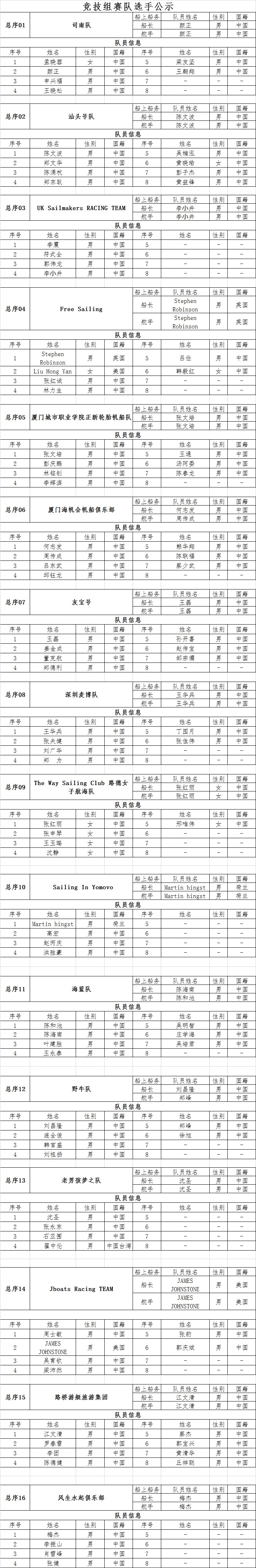 第12届中国“俱乐部杯”帆船挑战赛赛队及选手公示