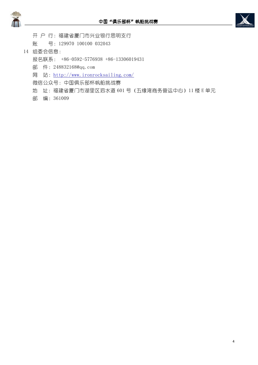 第14届中国“俱乐部杯”帆船挑战赛 竞赛通知